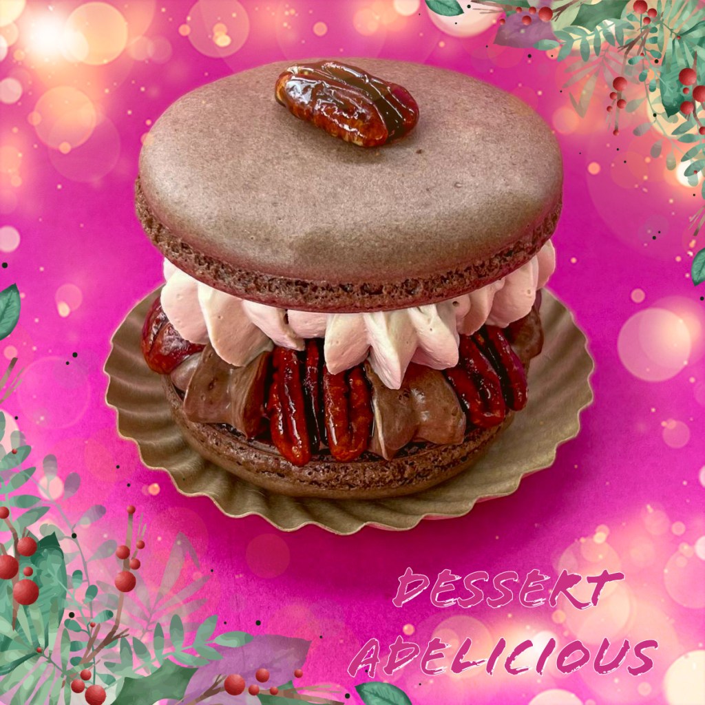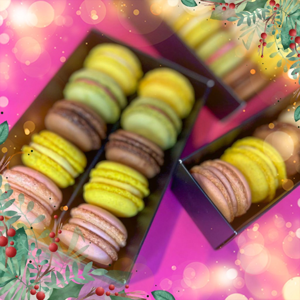 Vous pouvez commander des macarons sucrés de Adelicious : boîte de 7 pièces 12€ ou de 10 pièces 16€ (mélange, goûts : chocolat, mangue/ passion, framboise/matcha, vanille, citron, casssis, fraise/menthe). Commande à récupérer aux mêmes conditions que les menus.